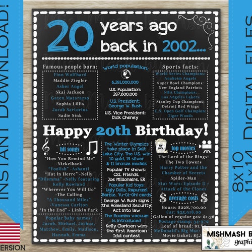 2002 20th Birthday Gift For Him 20th Birthday 2002 20th Etsy